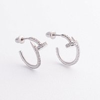 Срібні сережки - пусети "Конюшина" (біла кераміка) 1778б от ювелирного магазина Оникс - 1