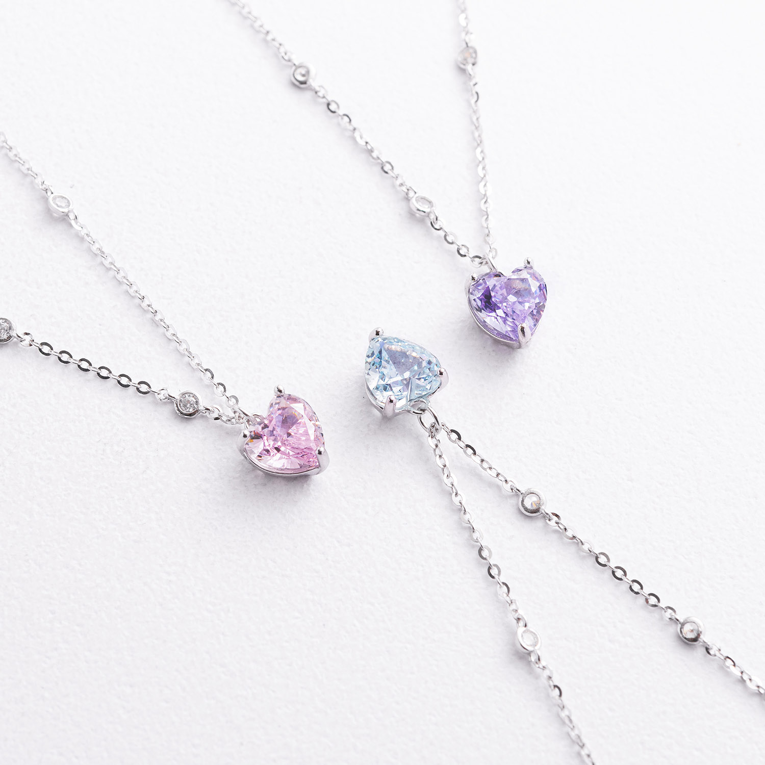Срібне кольє "Сердечко" (блакитний та білі фіаніти)