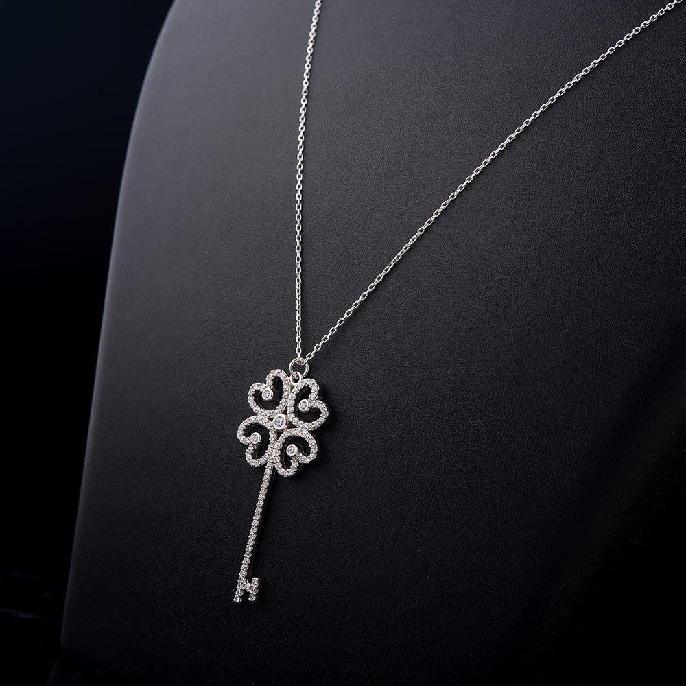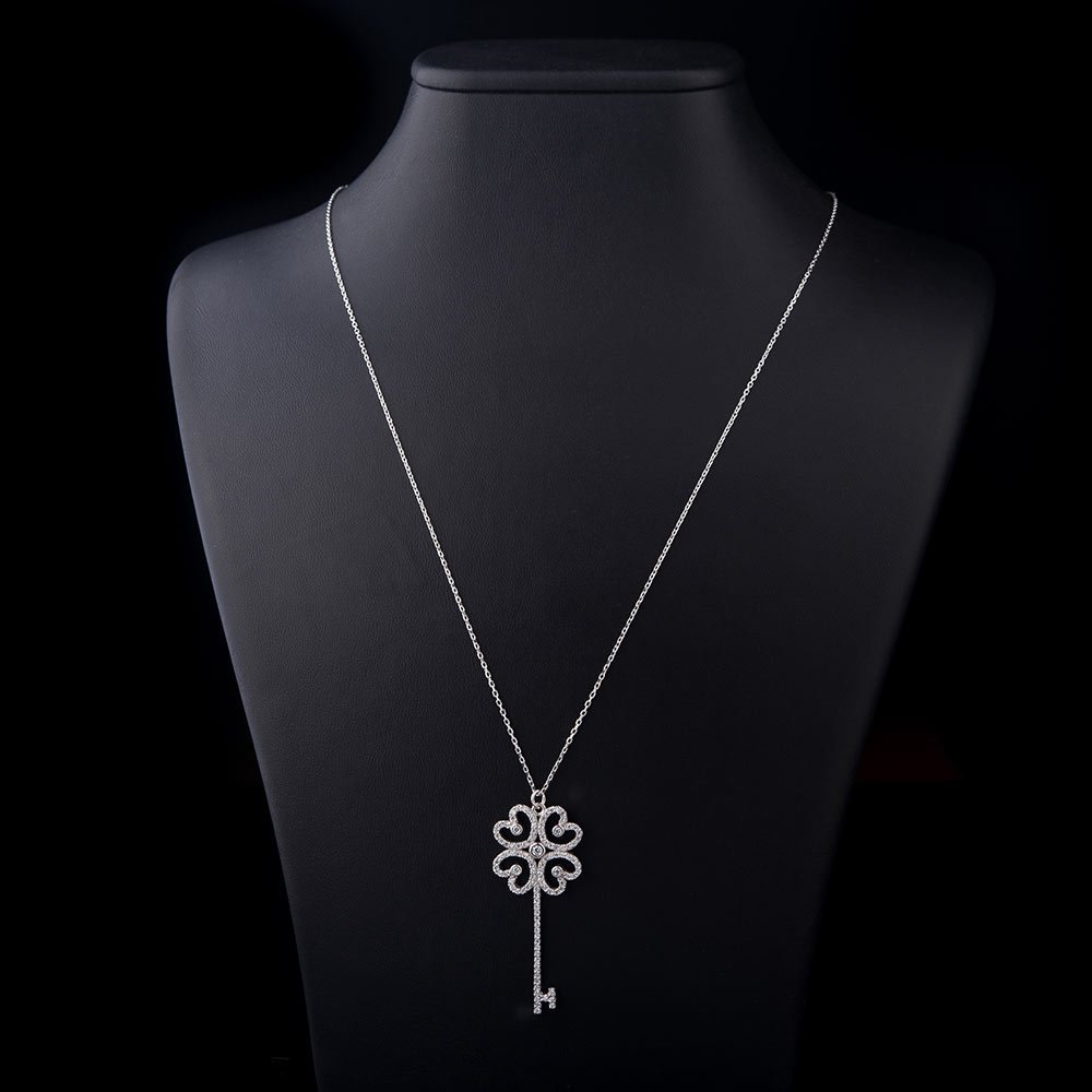 Срібне кольє "Ключик-конюшина" з фіанітами