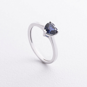 Срібна каблучка "Сердечко" (синт. сапфір)