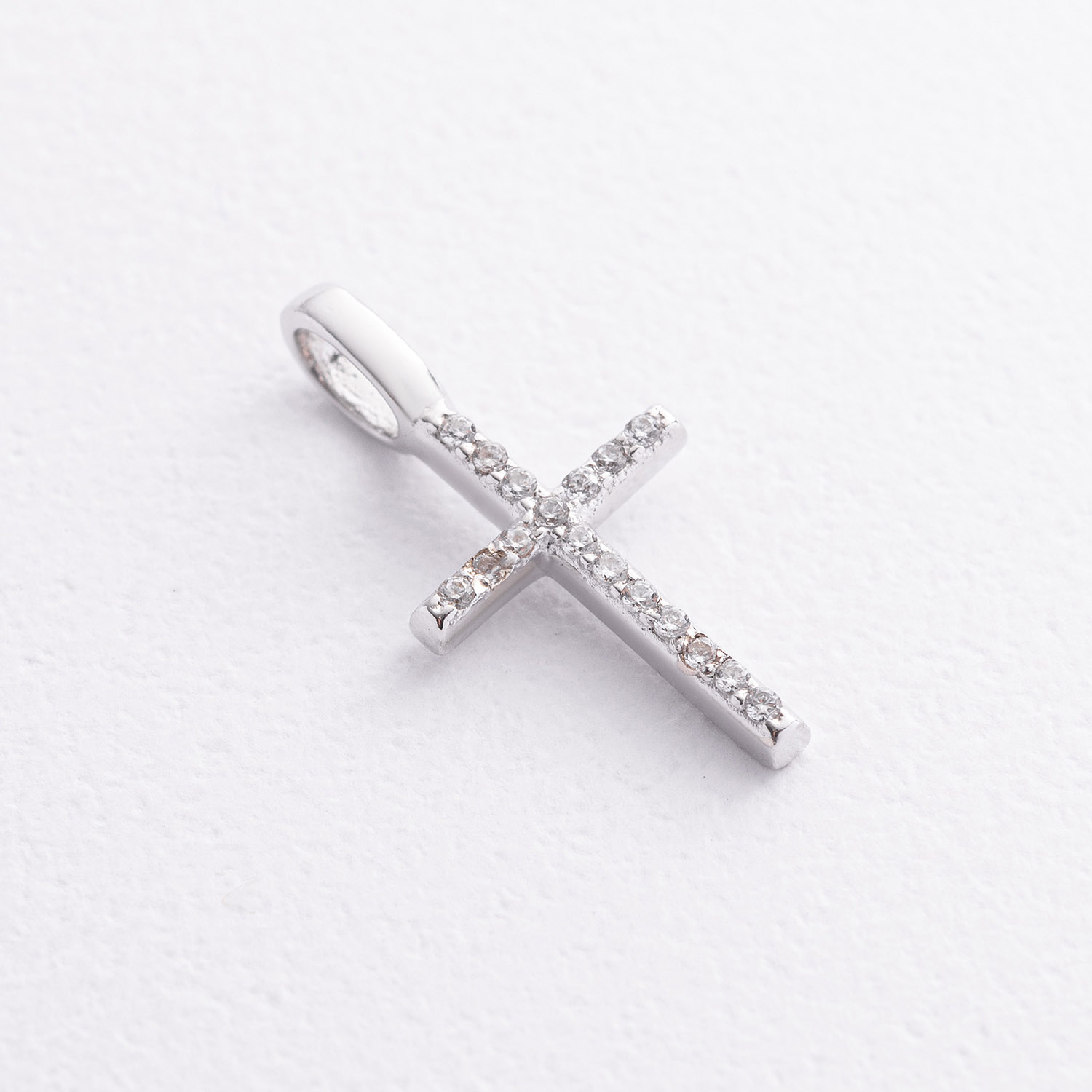 Срібний хрестик з білими фіанітами 3015/1р-CZ б  от ювелирного магазина Оникс - 1