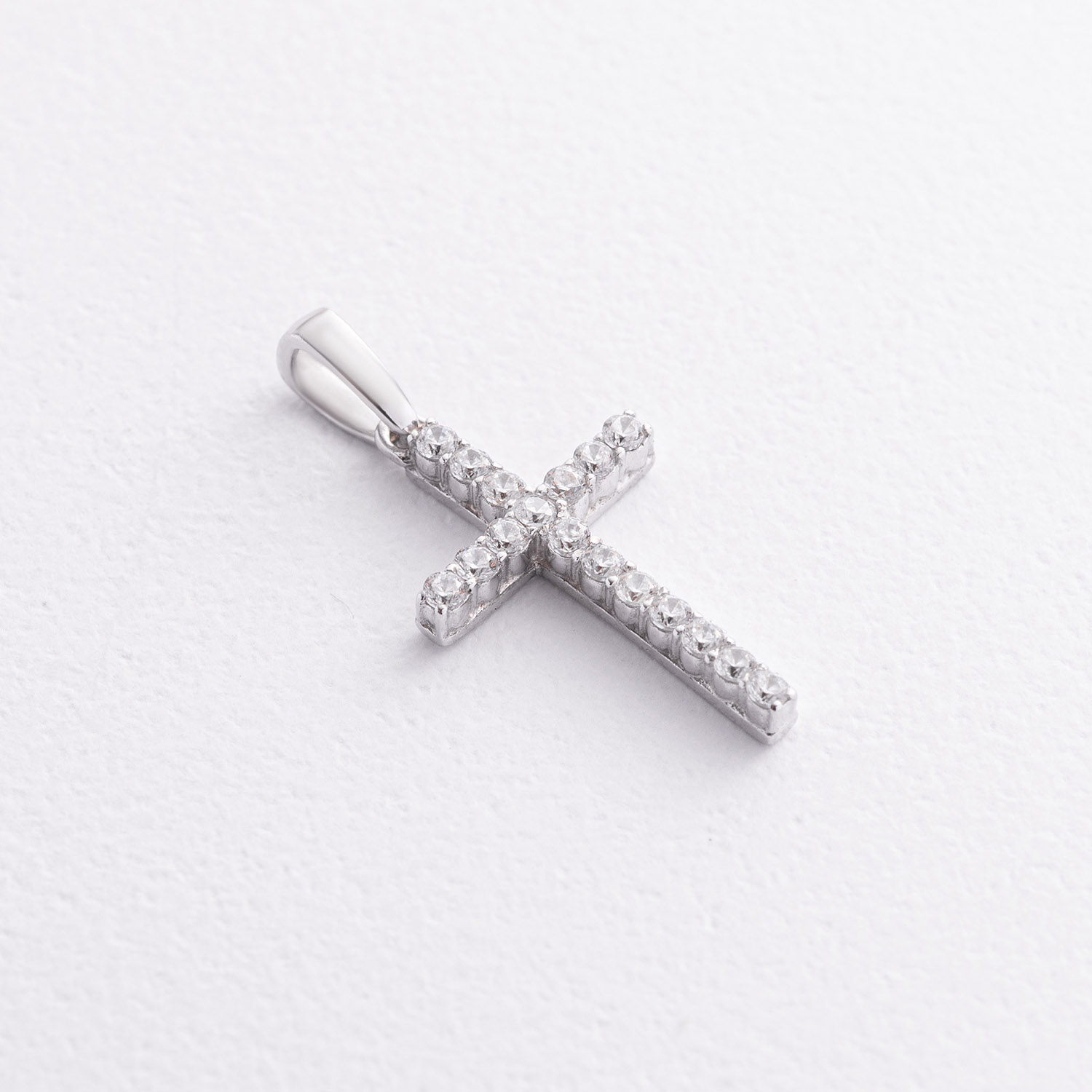 Срібний хрестик з білими фіанітами 3016/1р-CZ б от ювелирного магазина Оникс - 1
