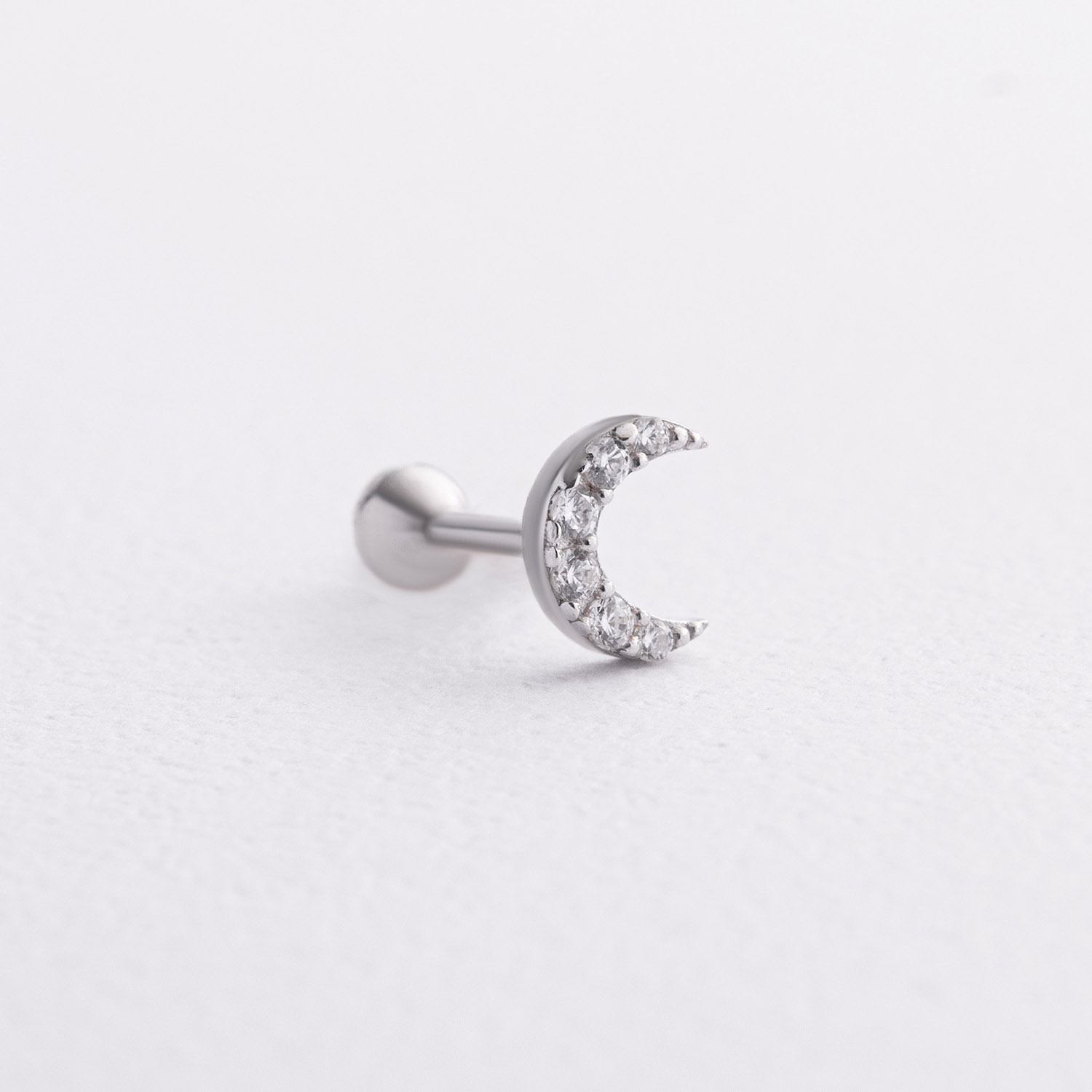 Одиночна срібна сережка "Луна" в хрящ вушка (фіаніти) 40107