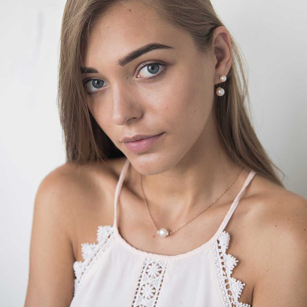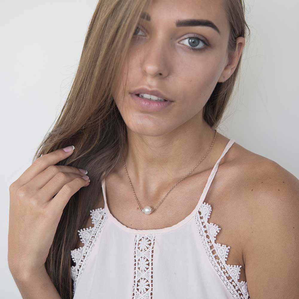 Золоте кольє з культивованими прісноводним перлами і фіанітами