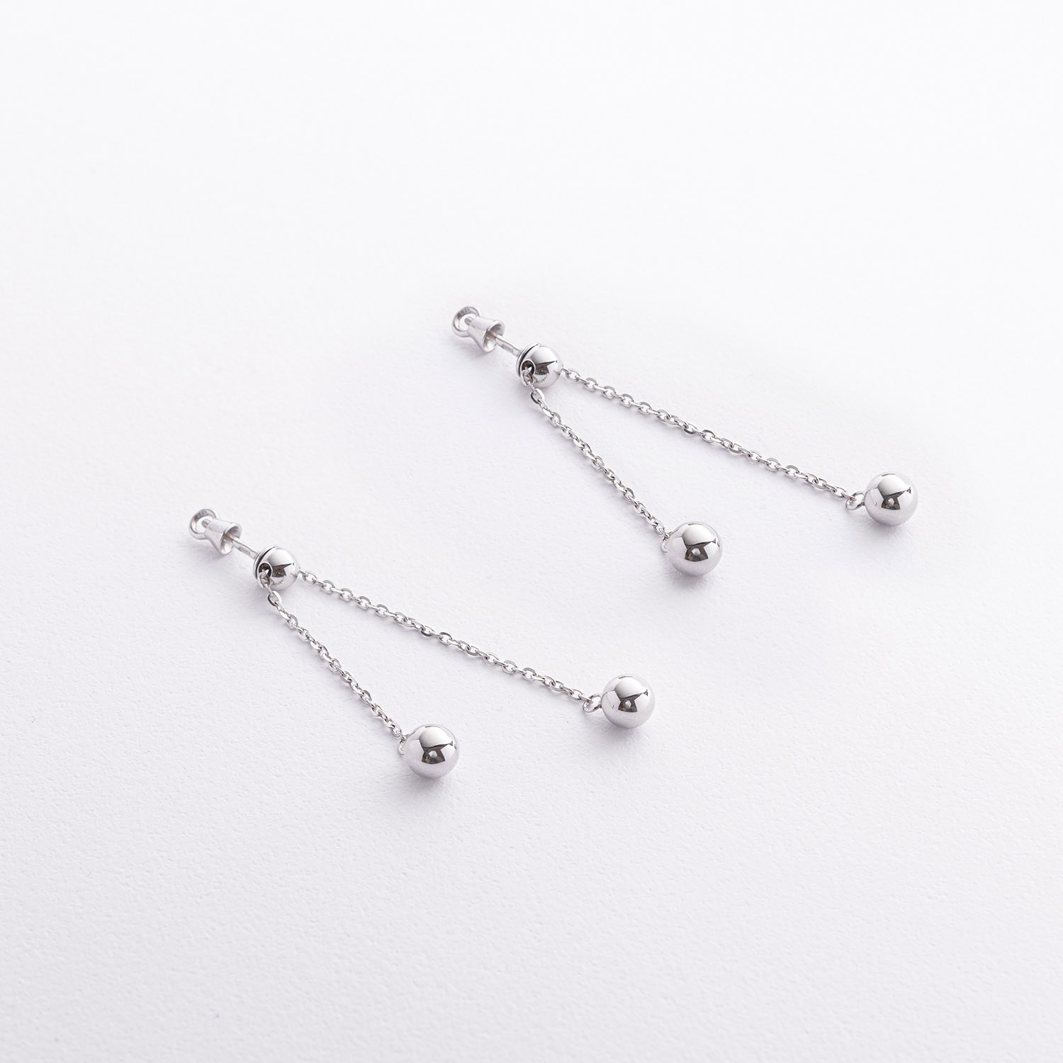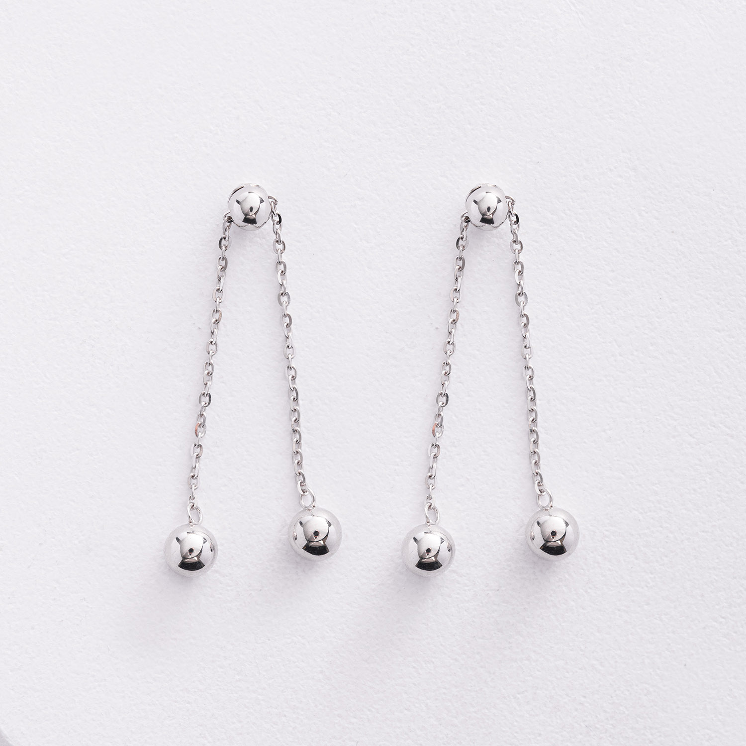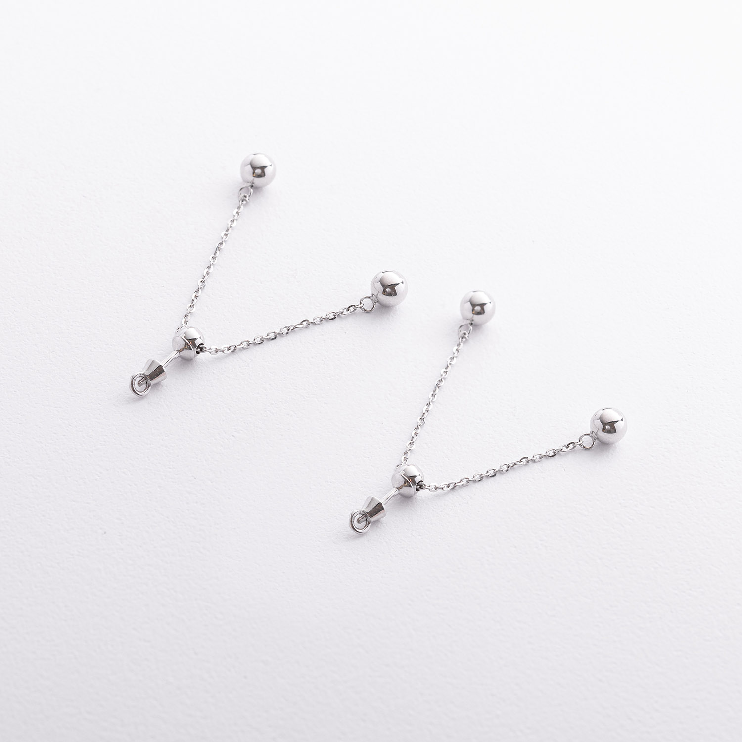 Сережки - пусети з кульками на ланцюжку (біле золото) 580142в от ювелирного магазина Оникс - 1