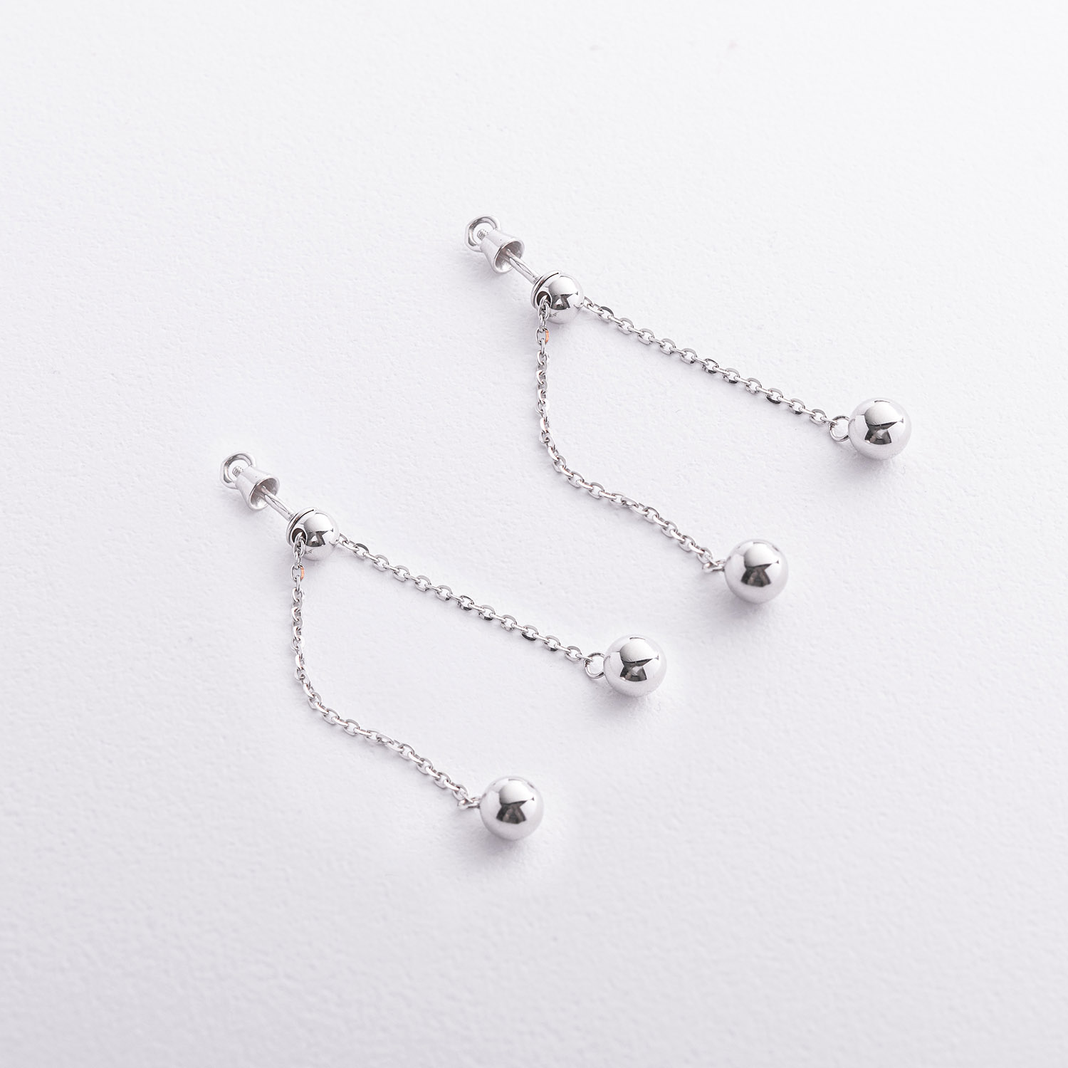 Сережки - пусети з кульками на ланцюжку (біле золото) 580142в от ювелирного магазина Оникс - 3