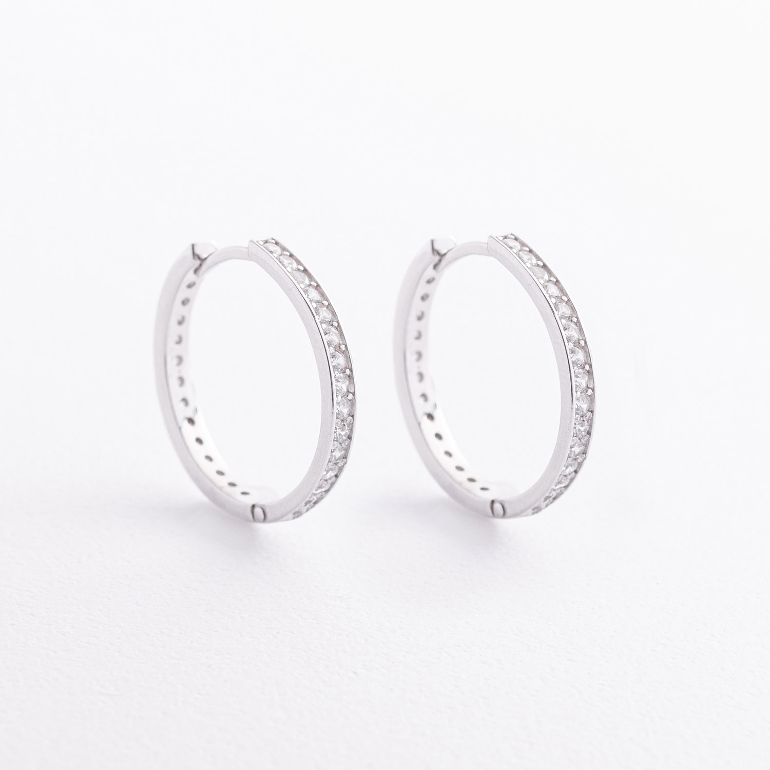 Срібні сережки - кільця з фіанітами 902-01062 от ювелирного магазина Оникс - 1