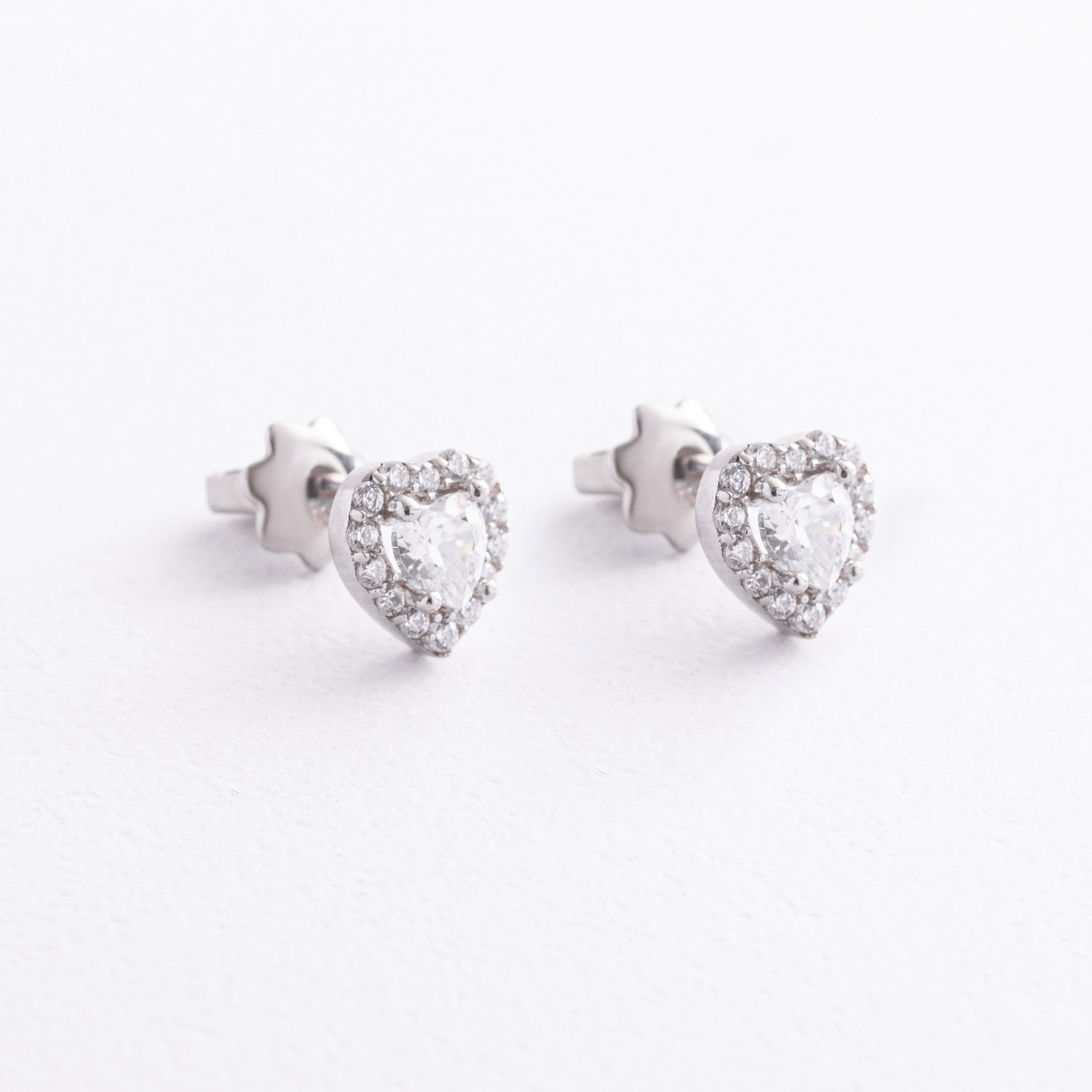 Срібні сережки - пусети "Сердечки" фіанітами 902-01584 от ювелирного магазина Оникс