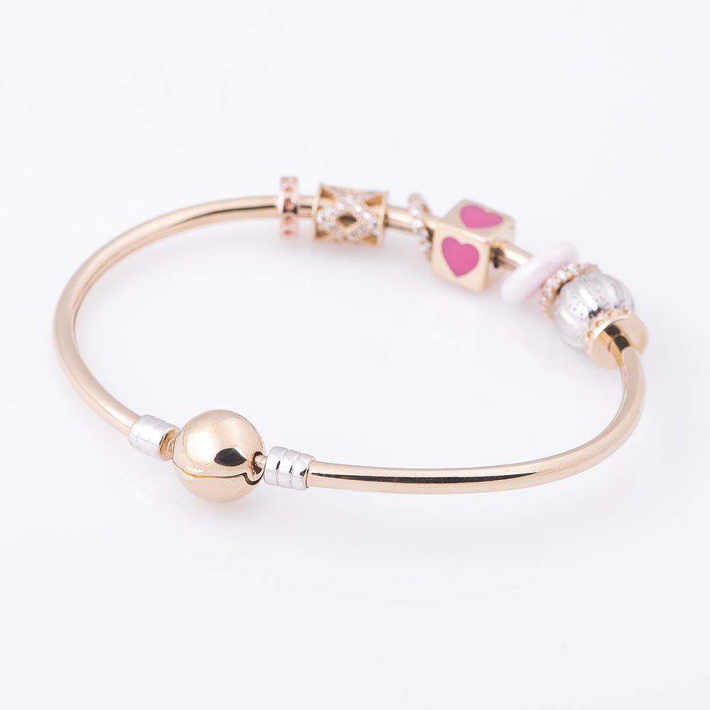 Золотий браслет з Шарм "Сердечко" (фіаніти)