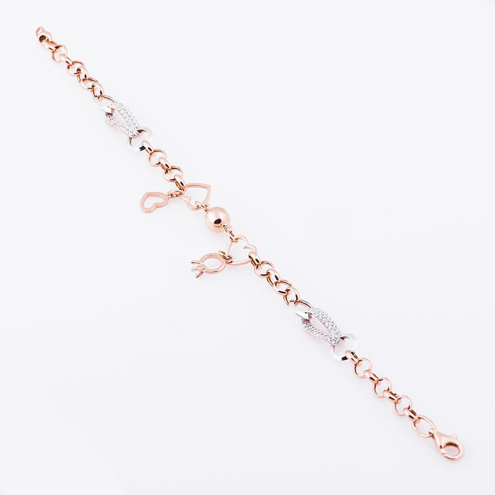 Золотий браслет з сердечком і колечком (фіаніти)