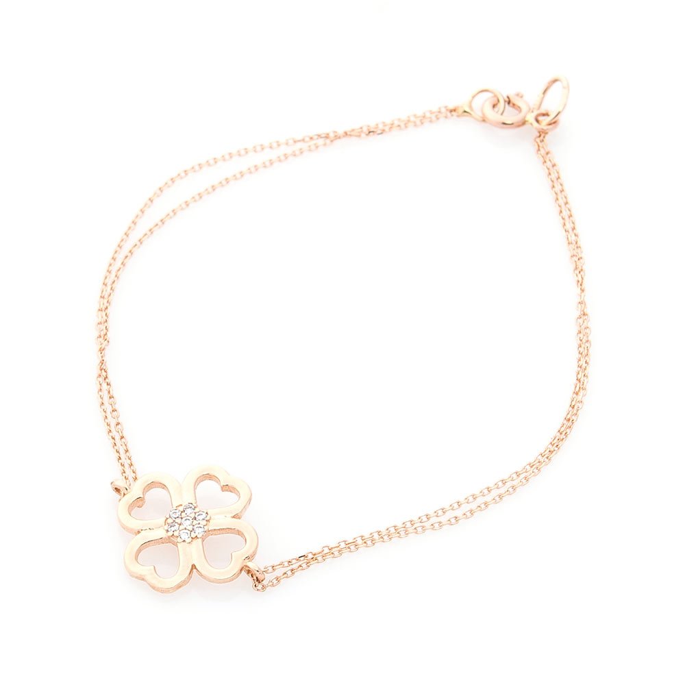 Золотий браслет "Конюшина" з фіанітами