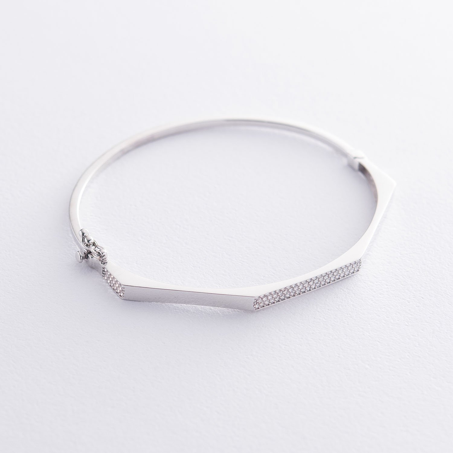 Жорсткий браслет в білому золоті (фіаніти) б04422 от ювелирного магазина Оникс - 1