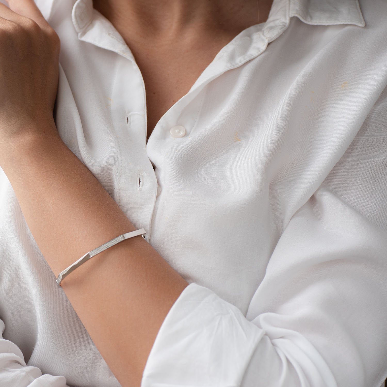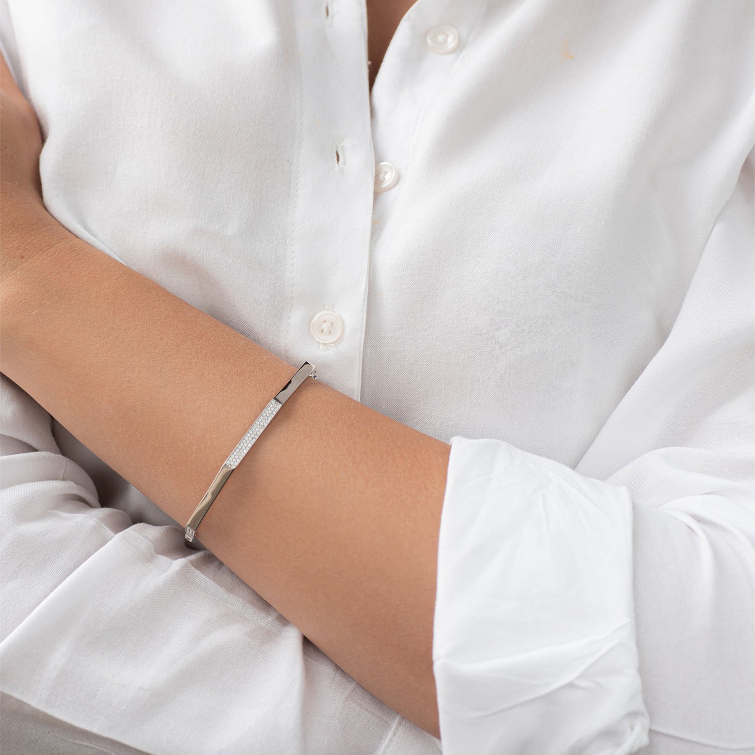 Жорсткий браслет в білому золоті (фіаніти)