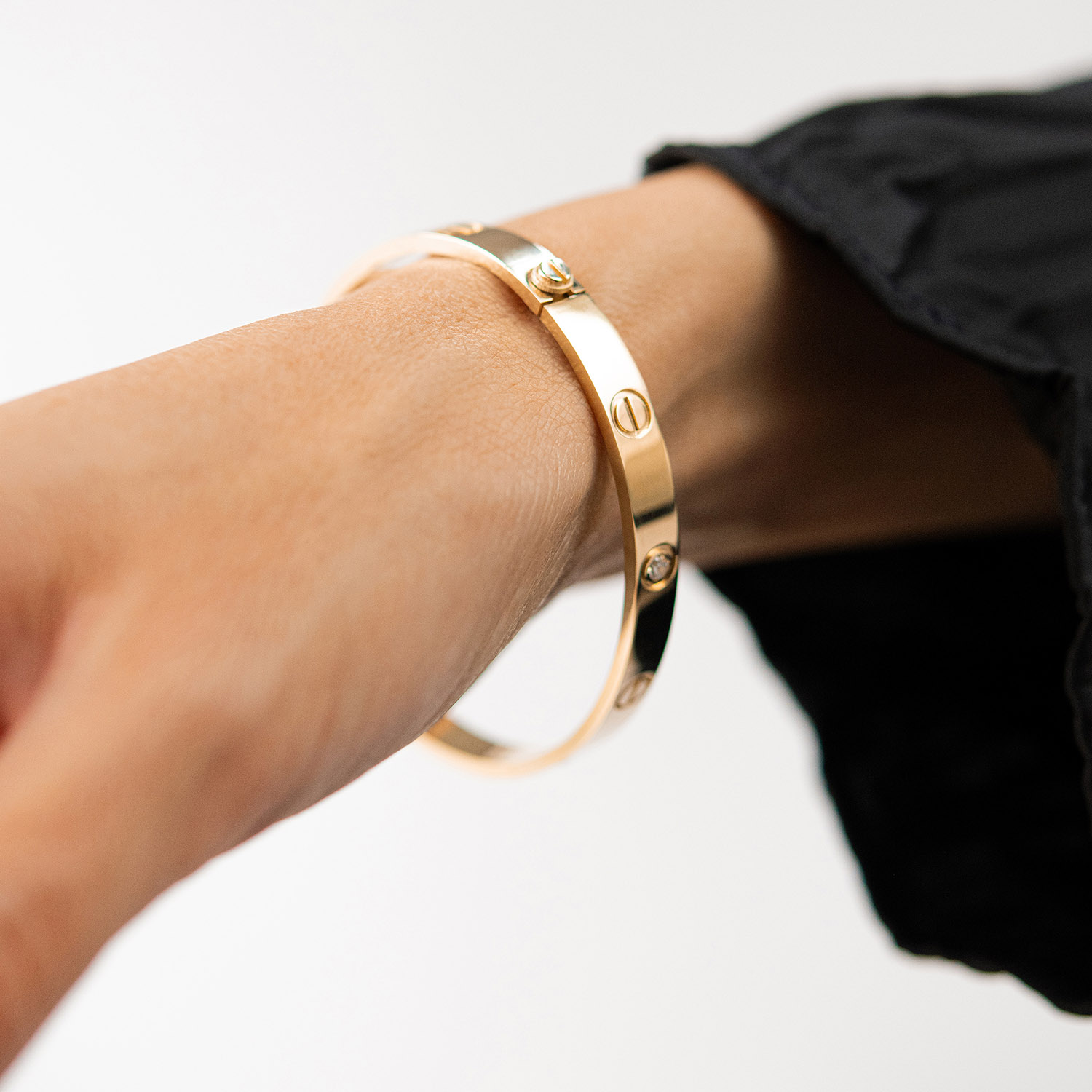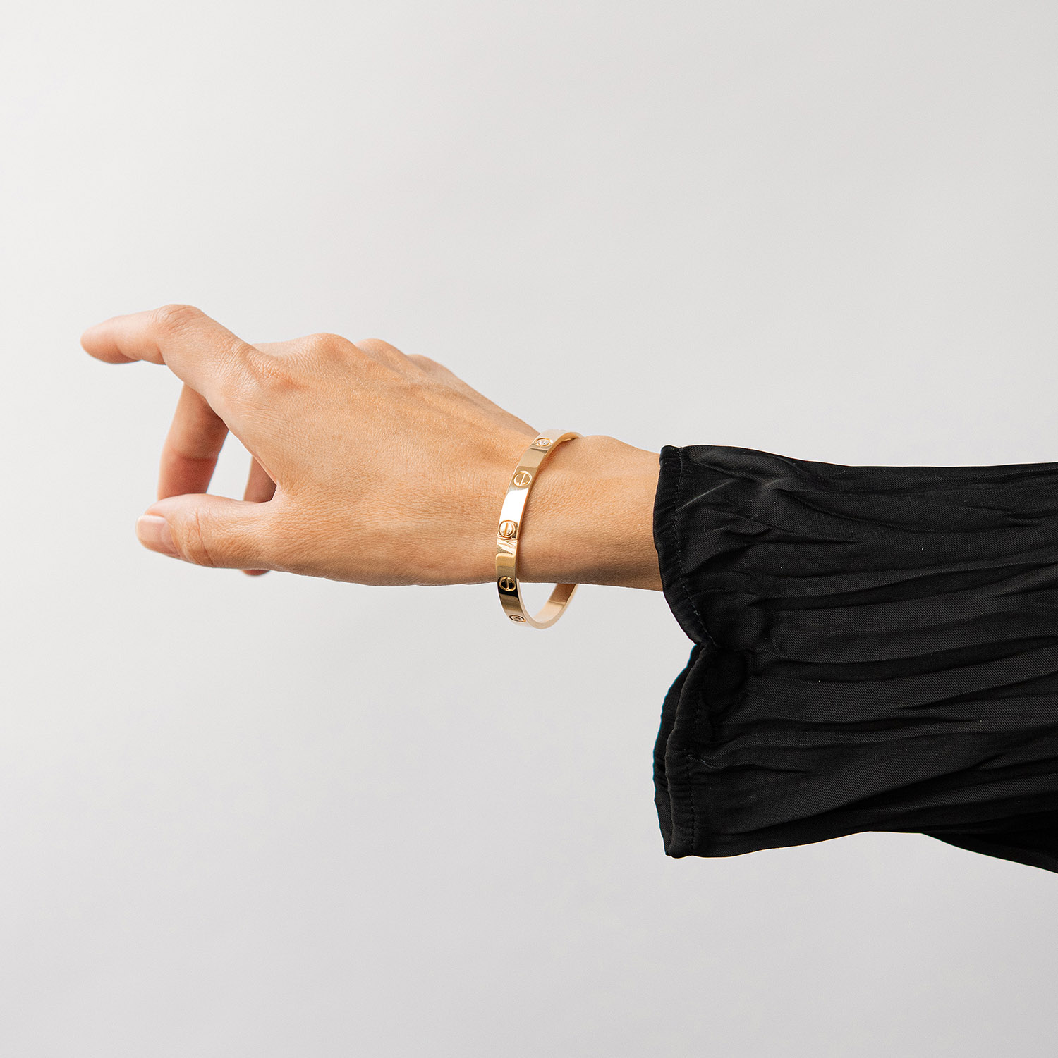 Жорсткий браслет "Love" з фіанітами (жовте золото)