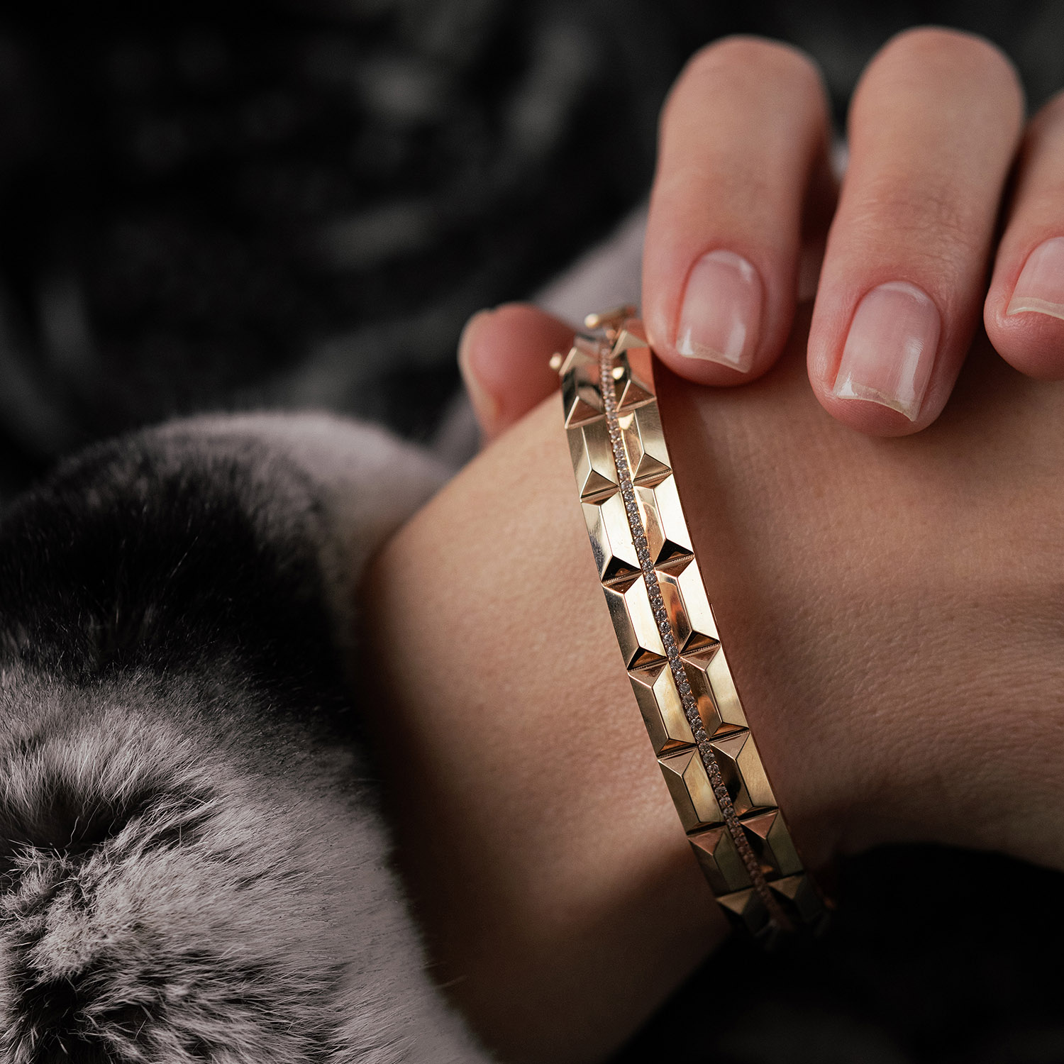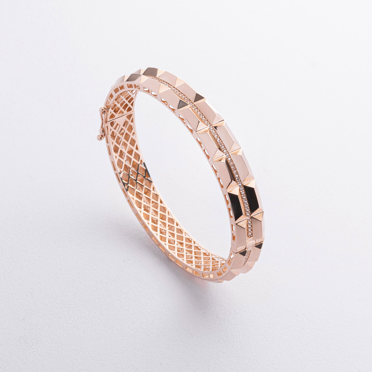 Жорсткий браслет "Charlotte" з фіанітами (червоне золото)