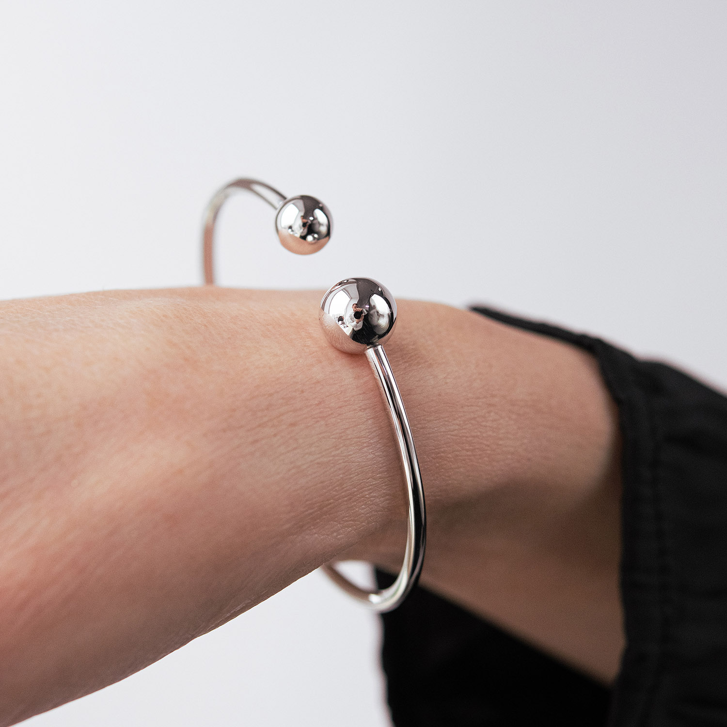 Жорсткий браслет "Кульки" у білому золоті