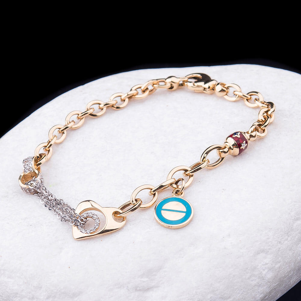Золотий браслет з емаллю і фіанітами