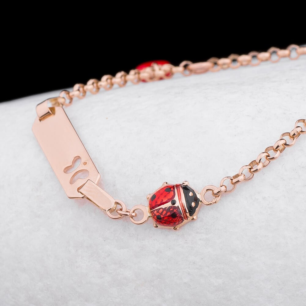 Золотий дитячий браслет "Божа корівка, Серце" для гравіювання