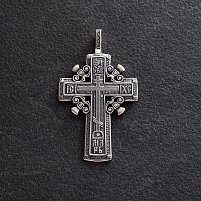 Срібний хрестик з чорнінням "Господь Вседержітель.Ікона Божої Матері" Невипивана Чаша "