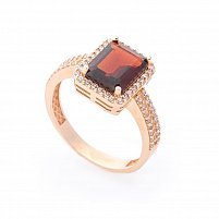 Золота каблучка з димчастим кварцом і фіанітами