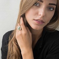 Золота каблучка з празіолітом і фіанітами