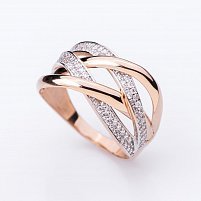 Золота каблучка з фіанітами к04965 от ювелирного магазина Оникс