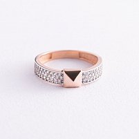 Золота заручальна каблучка "Сердечка" (фіаніти) к05984 от ювелирного магазина Оникс - 1