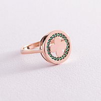 Каблучка "Конюшина" в червоному золоті (чорні фіаніти)