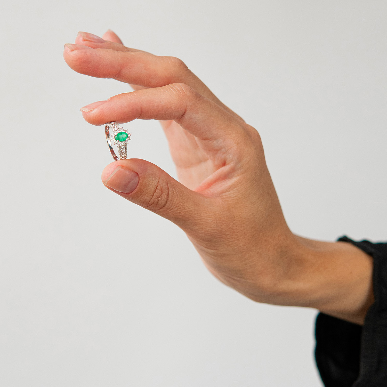 Золота каблучка зі смарагдом і діамантами кб0659ca от ювелирного магазина Оникс - 5