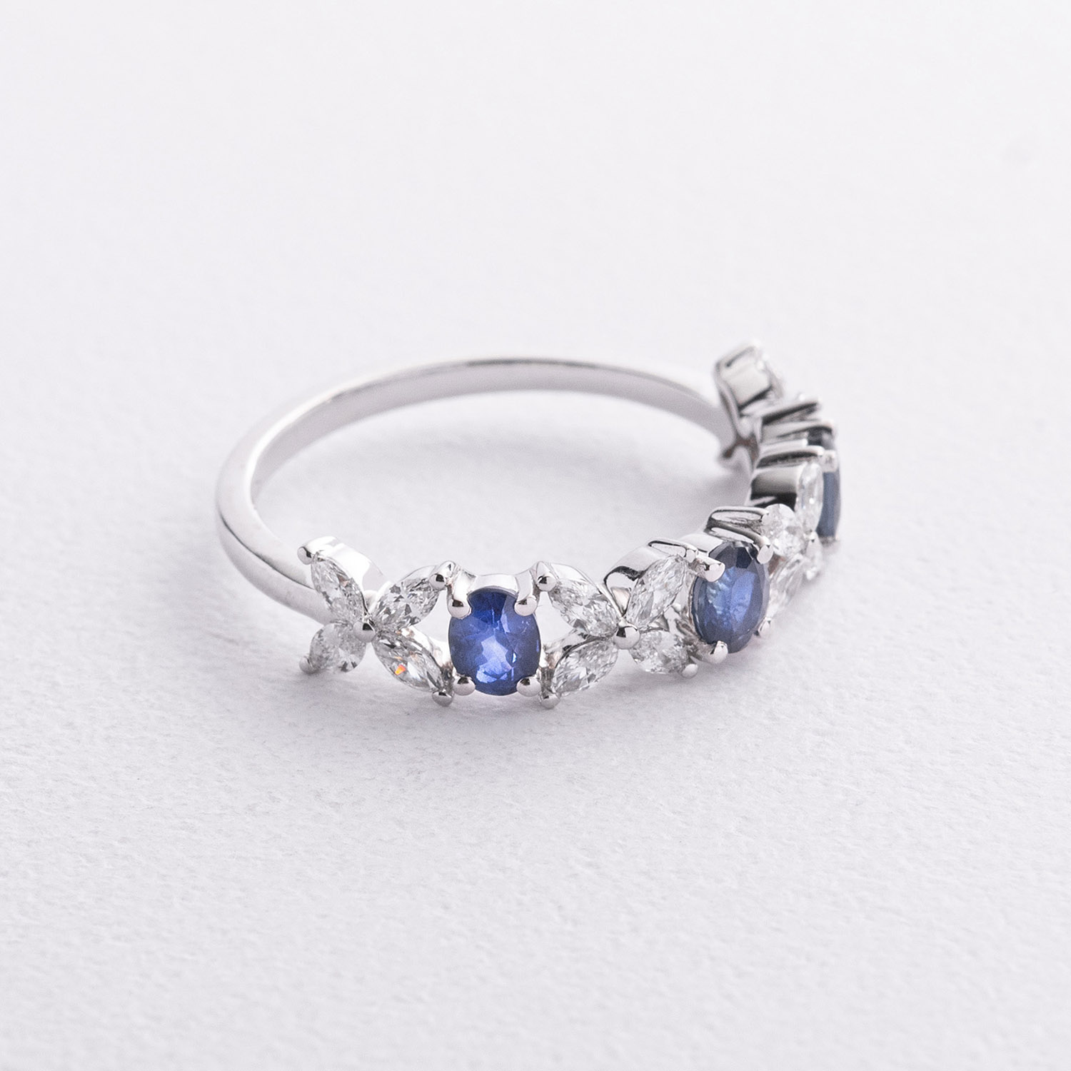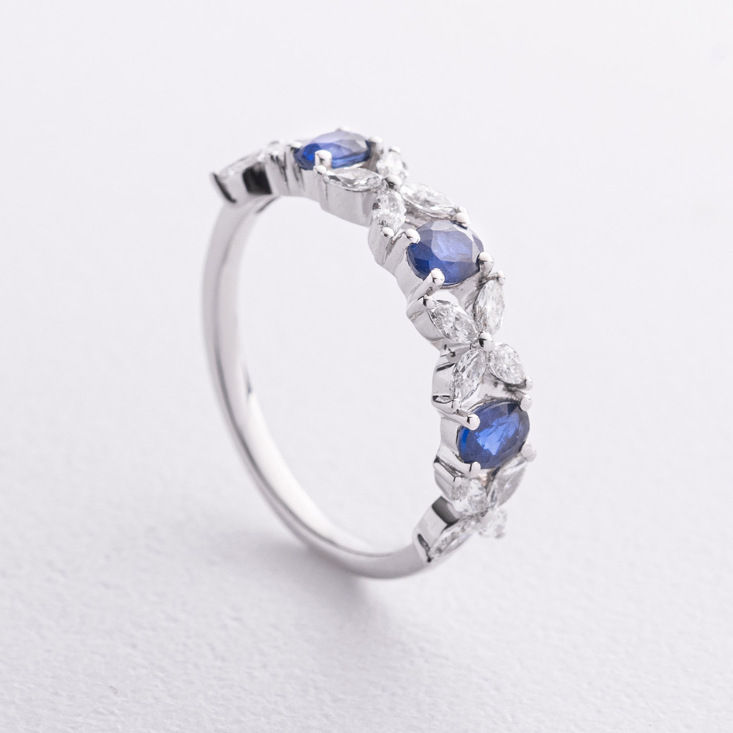 Золота каблучка "Конюшина" з діамантами і сапфірами кб0672ca от ювелирного магазина Оникс - 1