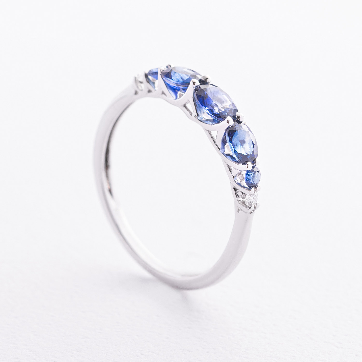 Золота каблучка з сапфірами і діамантами кб0676lg от ювелирного магазина Оникс