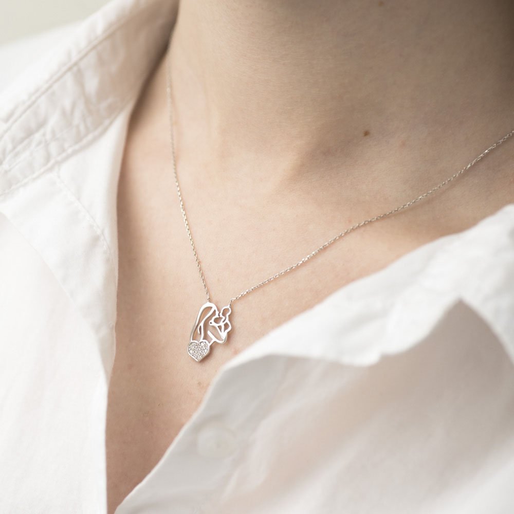 Золоте кольє "Мати з дитиною" (фіаніти)