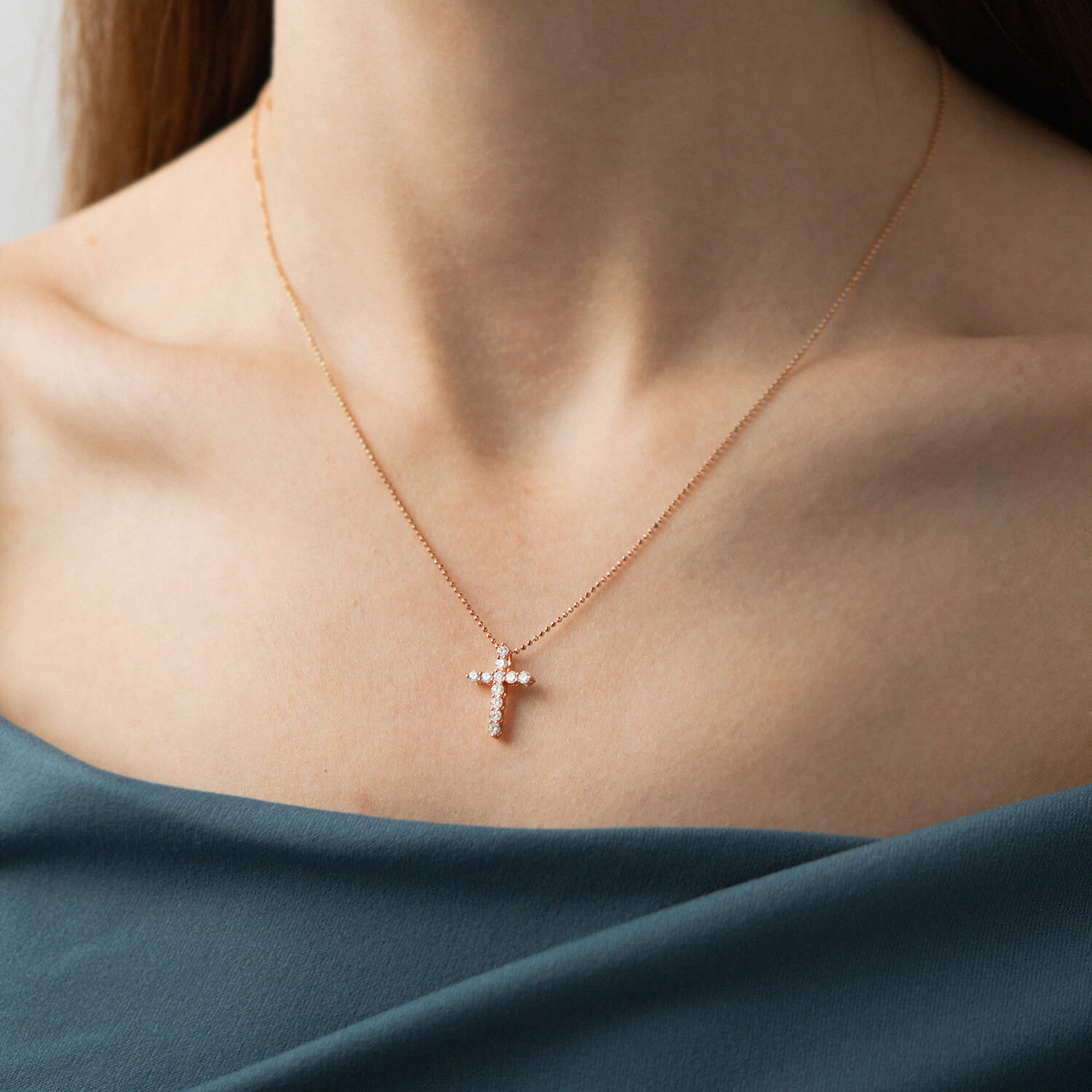 Хрестик у червоному золоті з діамантами пб0357lg от ювелирного магазина Оникс