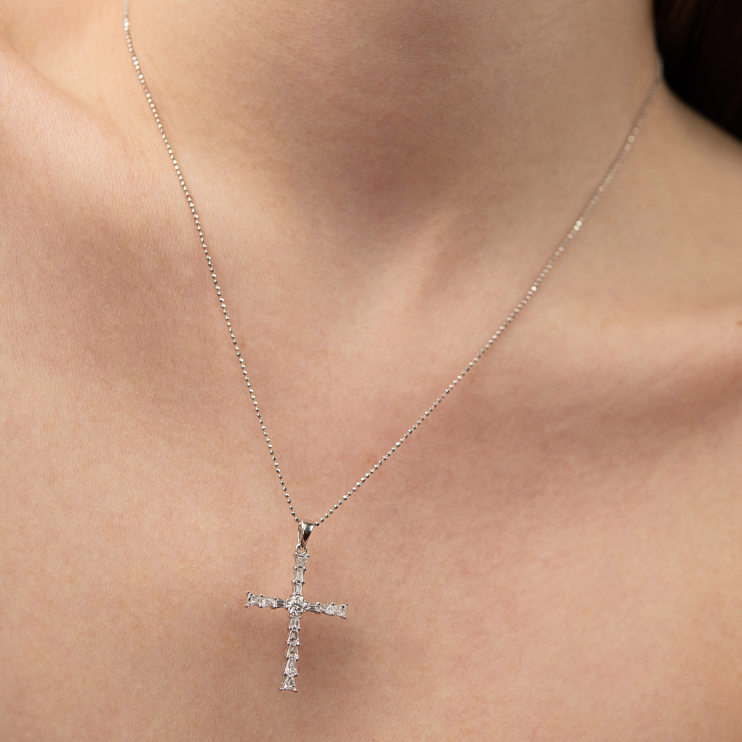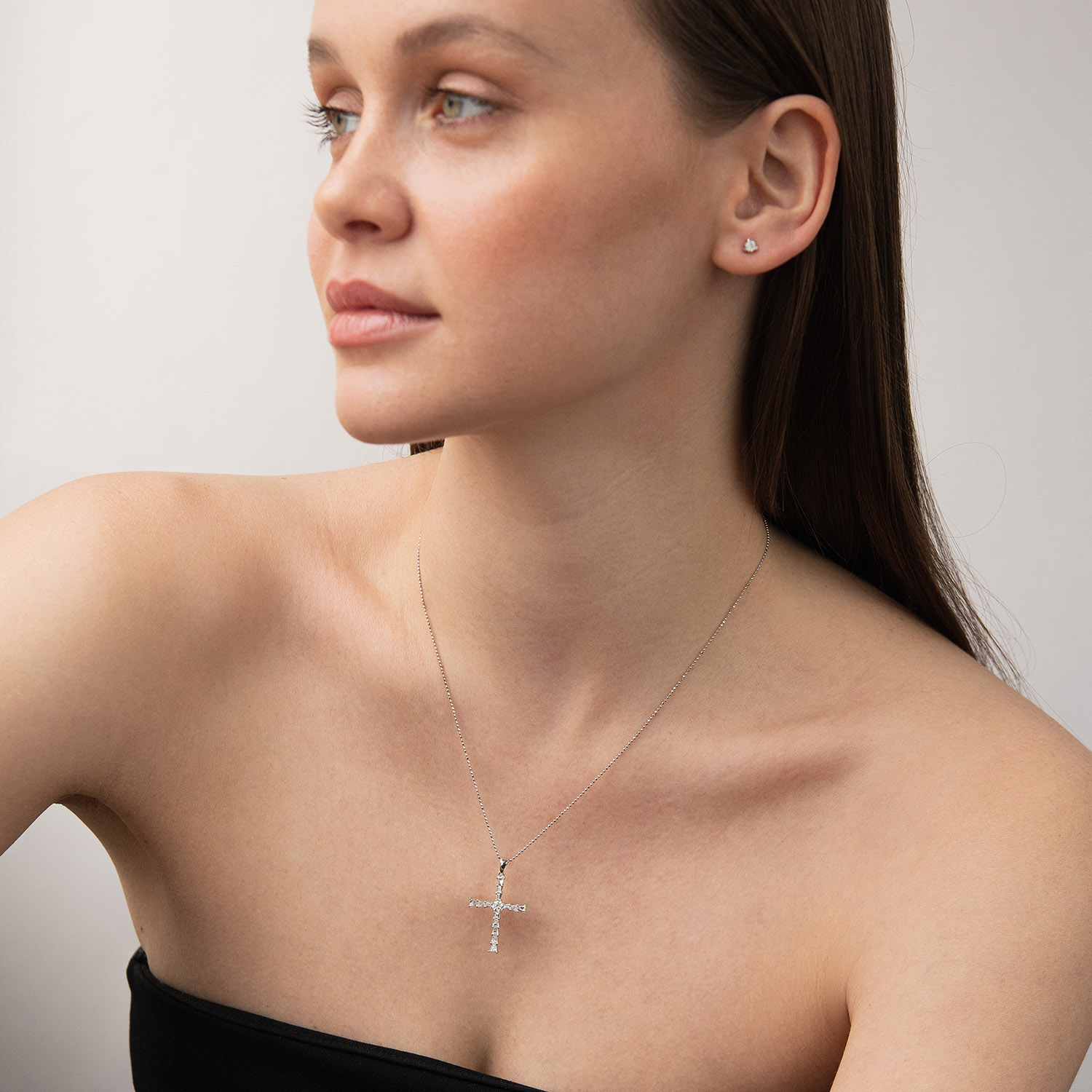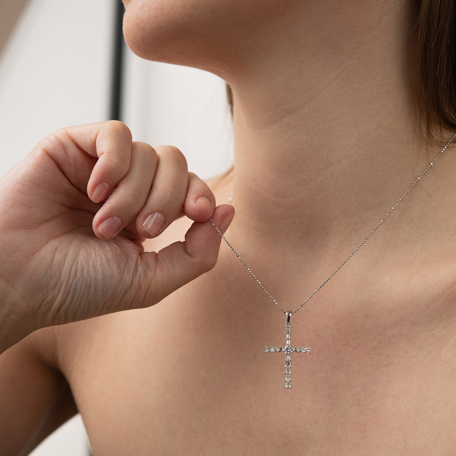 Хрестик у білому золоті з діамантами пб0368cha от ювелирного магазина Оникс