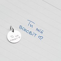 Наш брелок з ювелірної сталі може стати унікальним подарунком, який завжди буде берегти пам'ять про найважливішу та найяскравішу подію в житті Вашої коханої чи близької людини. На стальну частину ми наносимо гравіювання сторінки календаря саме того місяця та року, коли й трапилася пам'ятна подія. На круглому диску можуть бути нанесені слова кохання, як на прикладі, або ж будь-які інші слова чи зображення.