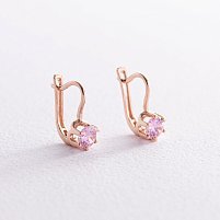 Дитячі золоті сережки з рожевими фіанітами с03468