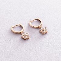 Золоті дитячі сережки "Квіточка" з емаллю та фіанітами