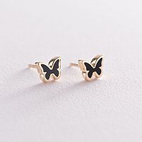 Сережки - пусети "Метелики" в червоному золоті (емаль) с06621 от ювелирного магазина Оникс