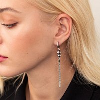 Золоті сережки - протяжки з фіанітами с07594 от ювелирного магазина Оникс - 1
