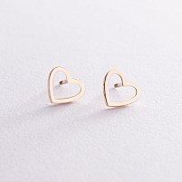 Золоті сережки - пусети "Сердечки" з фіанітами с08173