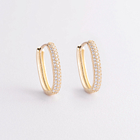 Золоті сережки "Овальні" з фіанітами с09505 от ювелирного магазина Оникс - 1