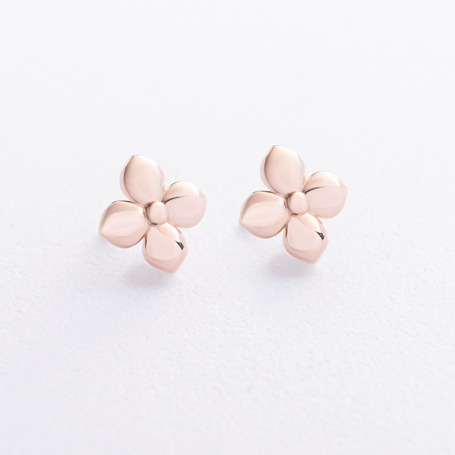 Сережки - пусети "Конюшина" в червоному золоті с09605 от ювелирного магазина Оникс