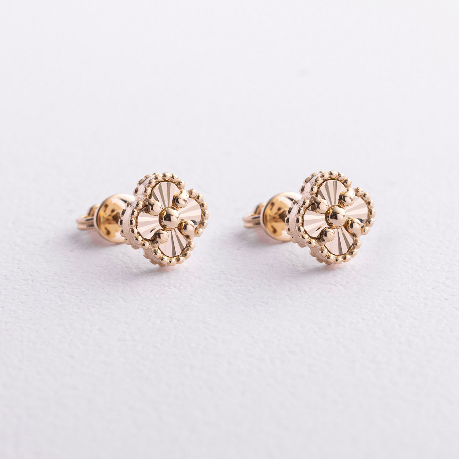 Сережки - пусети "Конюшина" в жовтому золоті с09670 от ювелирного магазина Оникс - 2