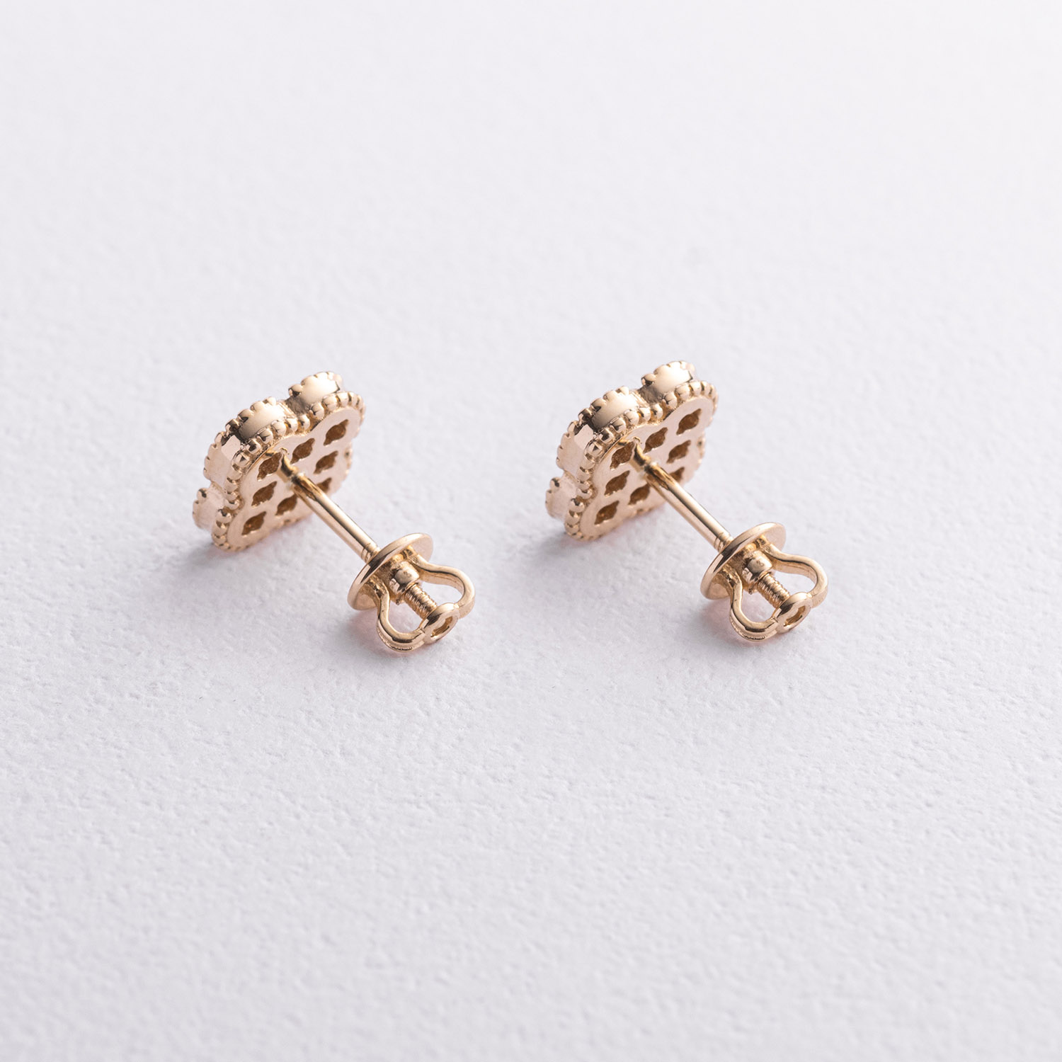 Сережки - пусети "Конюшина" в жовтому золоті с09671 от ювелирного магазина Оникс - 2