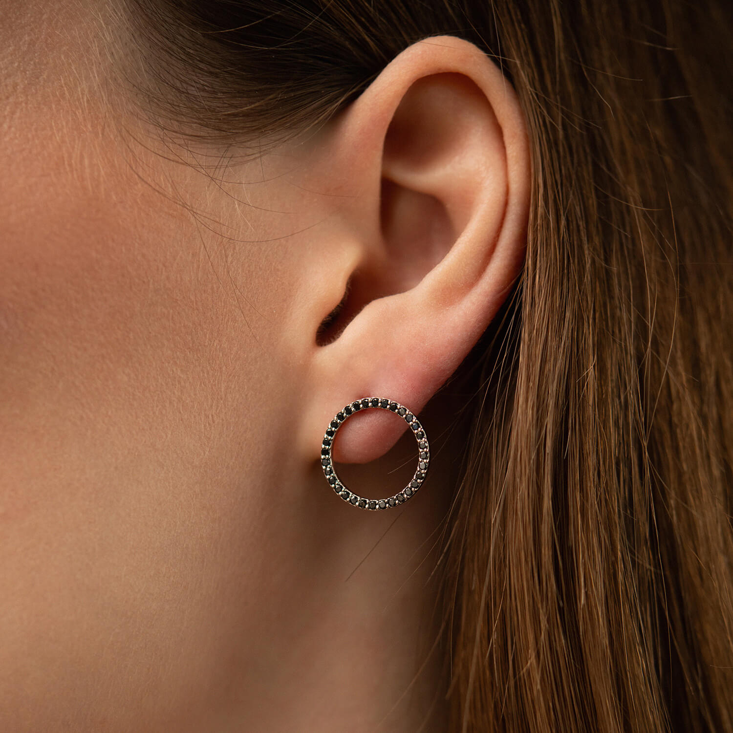 Золоті сережки - пусети "Круговорот" (чорні діаманти) сб0485м от ювелирного магазина Оникс - 1