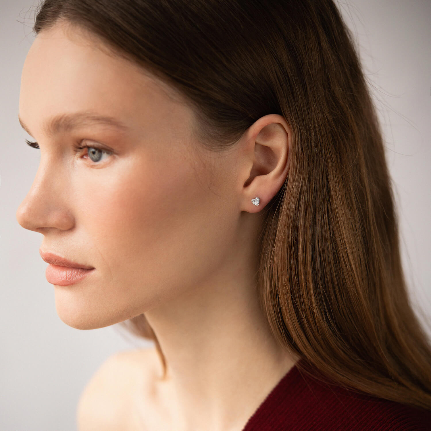 Золоті сережки - пусети "Сердечки" з діамантами сб0550mi от ювелирного магазина Оникс - 4