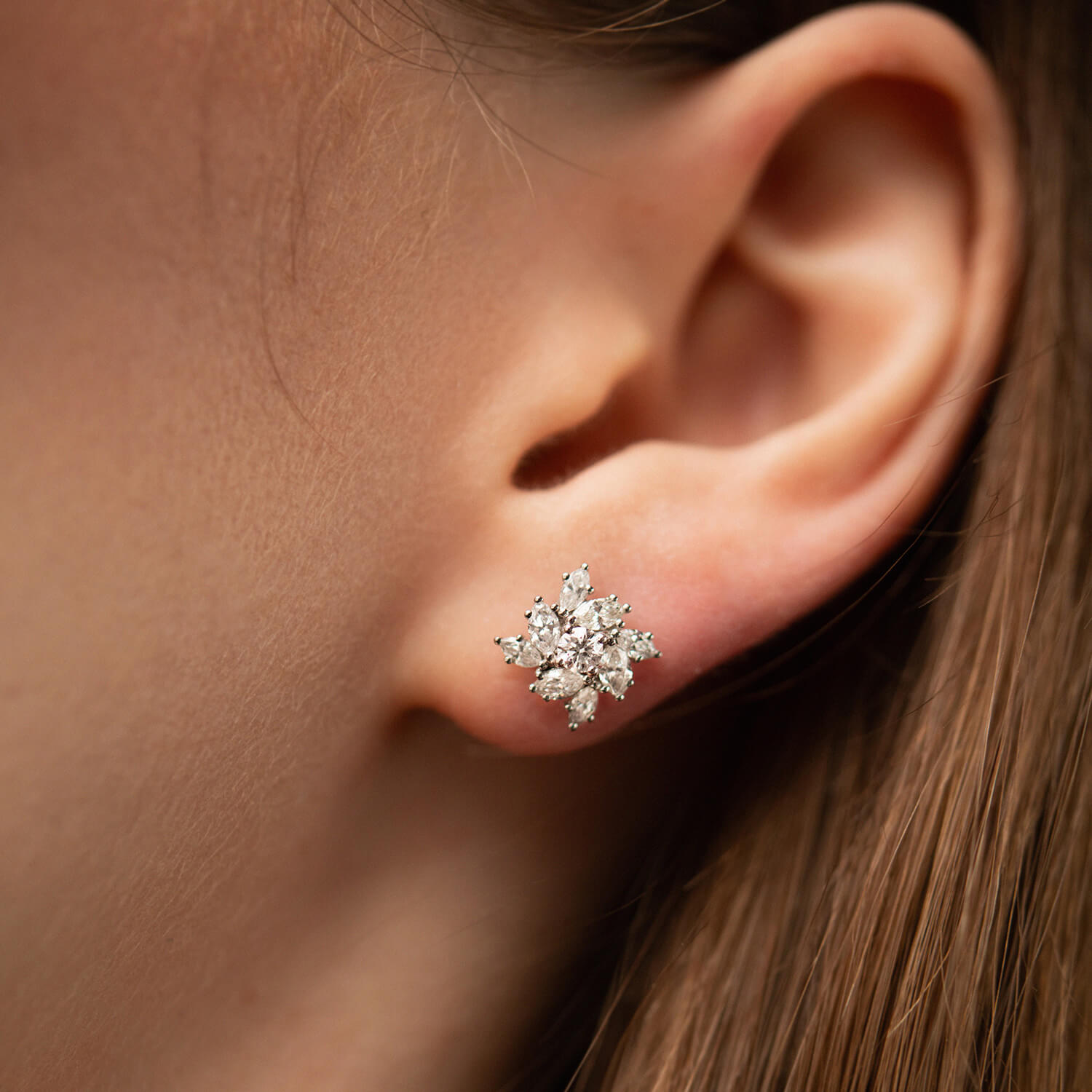 Золоті сережки - пусети "Квіточки" з діамантами