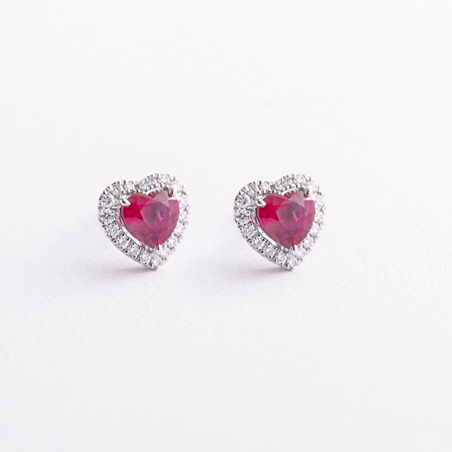 Золоті сережки - пусети "Сердечки" (діаманти, рубіни)
