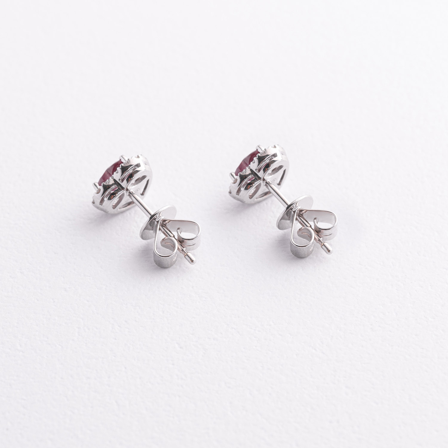 Золоті сережки - пусети "Сердечки" (діаманти, рубіни) сб0652nl от ювелирного магазина Оникс - 1