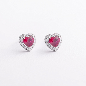 Золоті сережки - пусети "Сердечки" (діаманти, рубіни) сб0652nl от ювелирного магазина Оникс